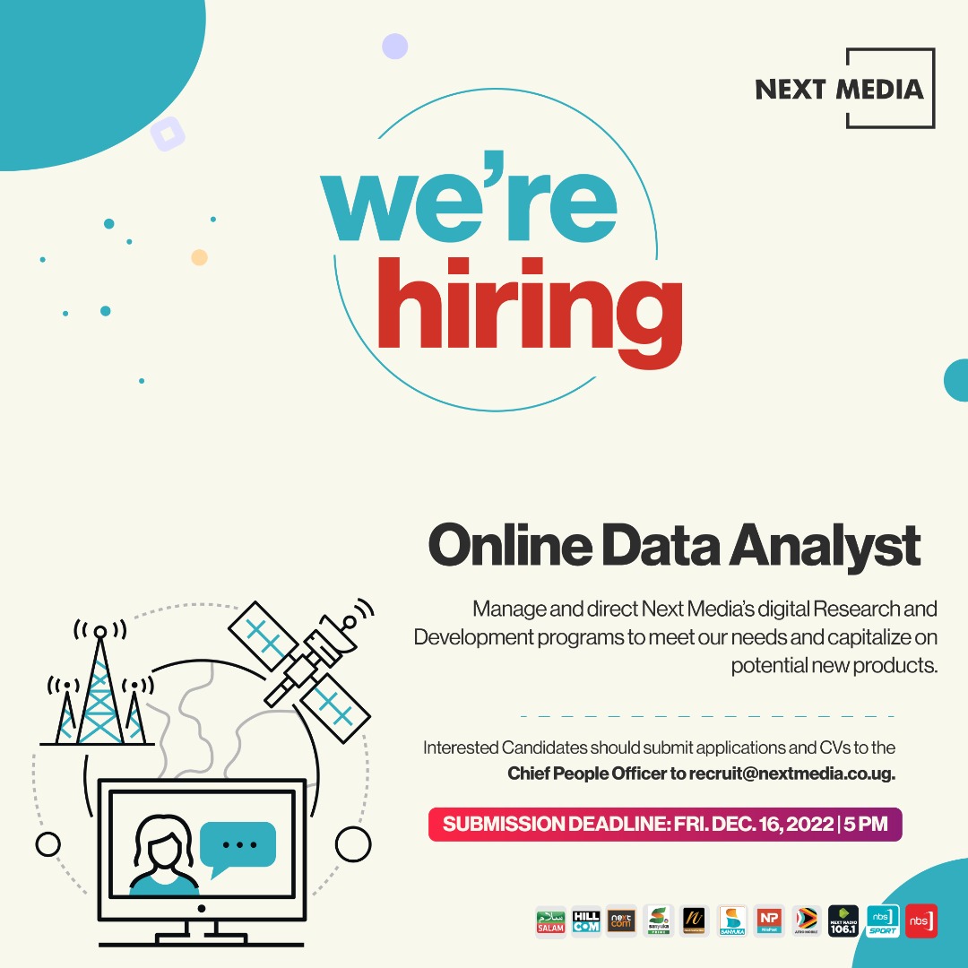 Following an intense Digital Realignment process led by our Group CEO, Kin Kariisa, an all new Digital Strategy, aimed at keeping us on track with our purpose To Be the Leading Multimedia Group for East Africa in an industry so competitive and heavily affected by global technological advancements, an all-new Digital Strategy is in effect at the Next Media Park. We hope you are the people that can help us maximize our ideas’ impact.